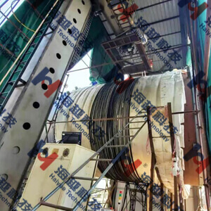 青島海越歷時近1年,經過大量模擬測試和不同加熱規(guī)范參數調整,掌握了電磁感應加熱在大型厚壁容器上的焊后熱處理技術。