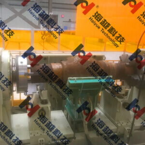 用于客戶現(xiàn)場的軸類表面堆焊保溫。軸表面進(jìn)行加熱保溫,焊接部位的溫度在250℃左右。筒體材質(zhì):ZG300-600。采用圓弧感應(yīng)器從軸底部進(jìn)行加熱維溫。